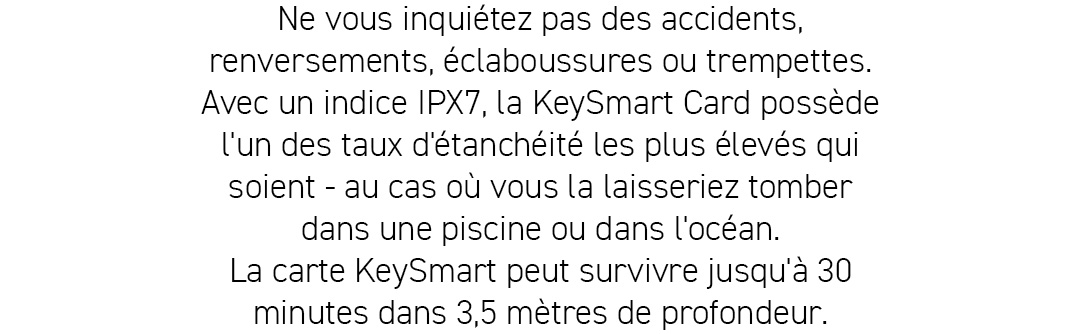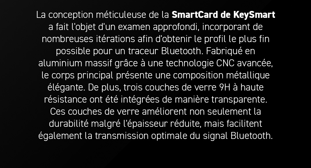 La configuration et l'utilisation de la KeySmart SmartCard ont été un jeu d'enfant. Elle a été constamment fiable, et la qualité de construction est excellente. La fonction étanche offre un sentiment de sécurité supplémentaire, surtout pendant mes activités en plein air.