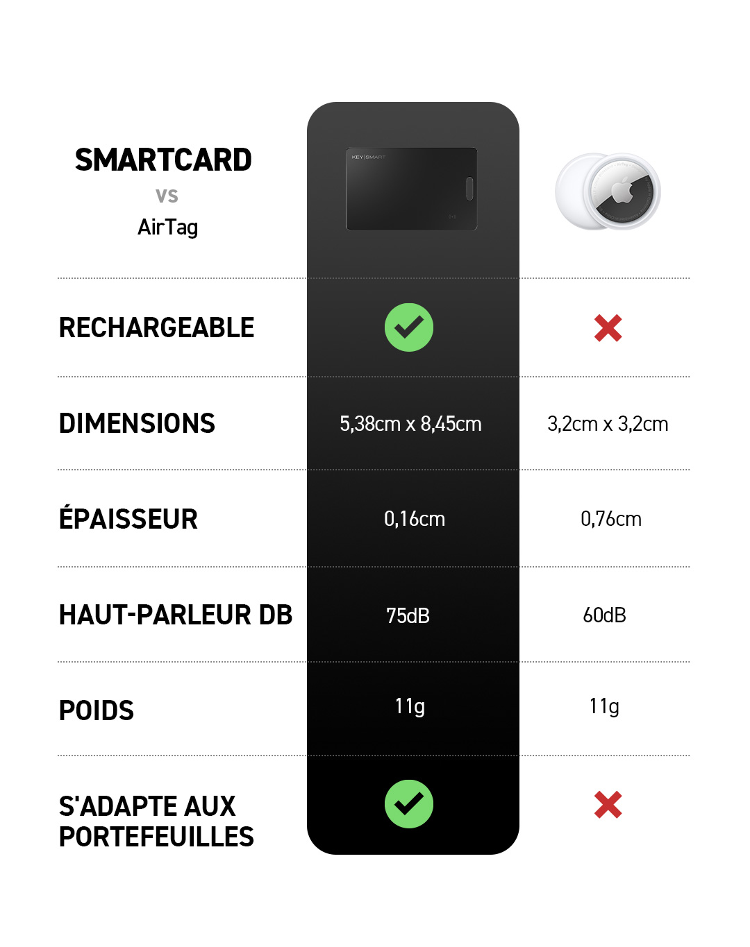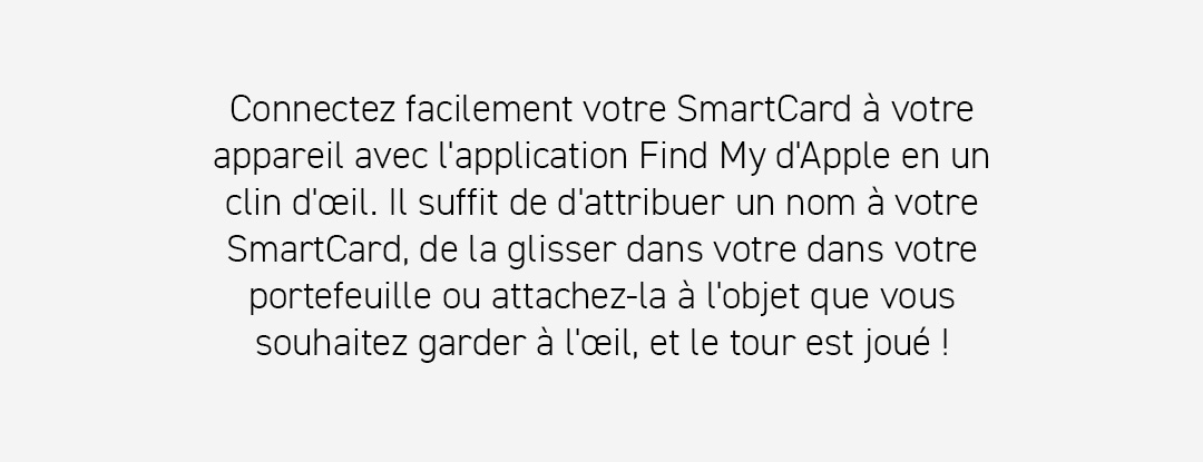 Précision de suivi limitée : La SmartCard ne propose pas les directions précises de style boussole auxquelles je m'attendais. Cependant, la fonction sonore est audiblement meilleure que celle d'autres localisateurs, ce qui rend plus facile la recherche d'objets lorsque l'on est proche.