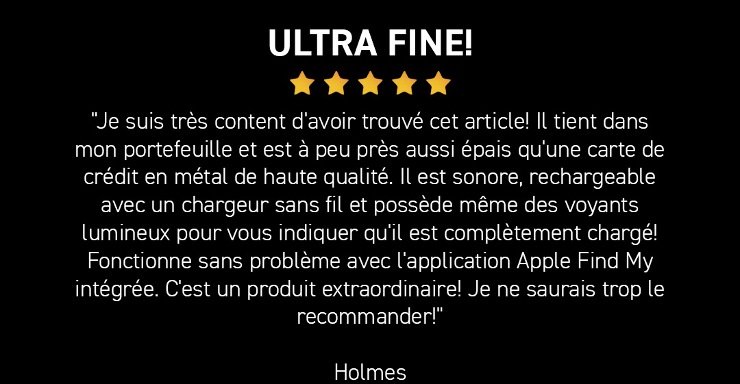 Localisation inexacte lorsque vous avez besoin d'informations détaillées : Le suivi indique la présence de l'objet dans ma maison mais ne peut pas me guider directement vers lui. Cependant, la fonction sonore est plus claire et plus forte que celle des AirTags, et le design élégant de la carte avec chargement sans fil sont des avantages indéniables.